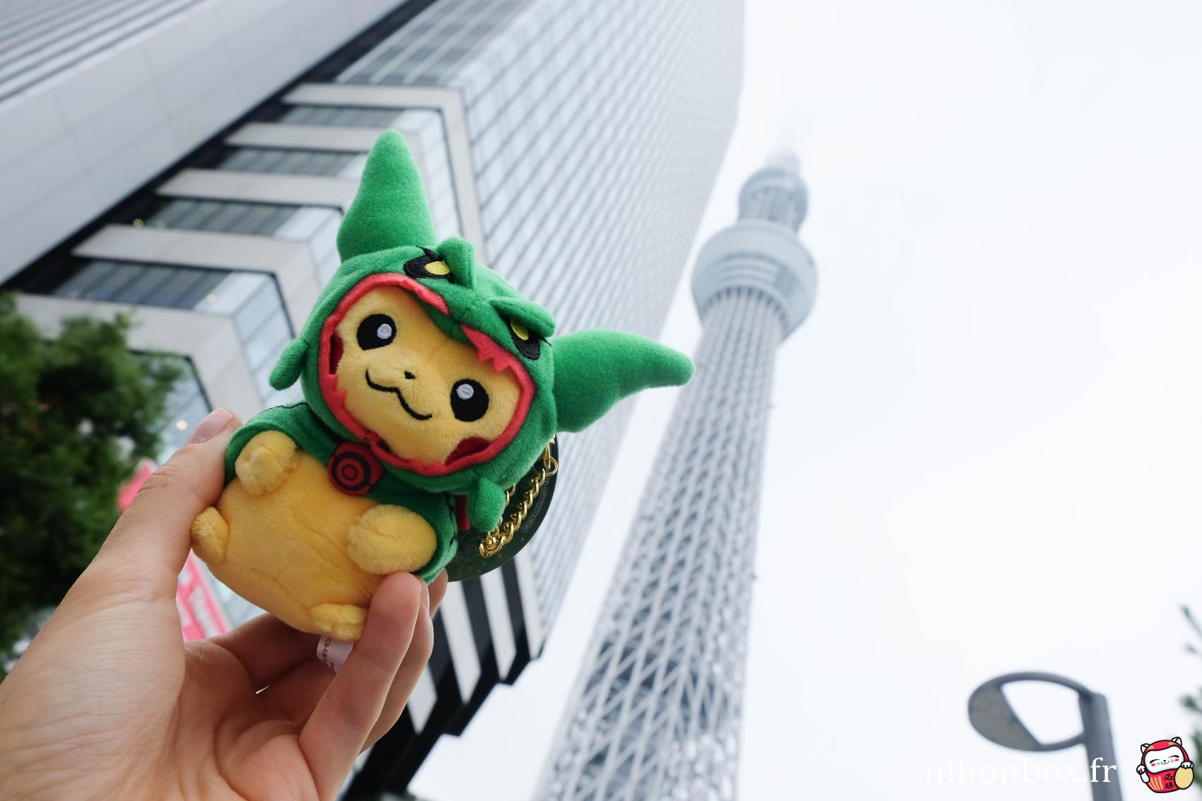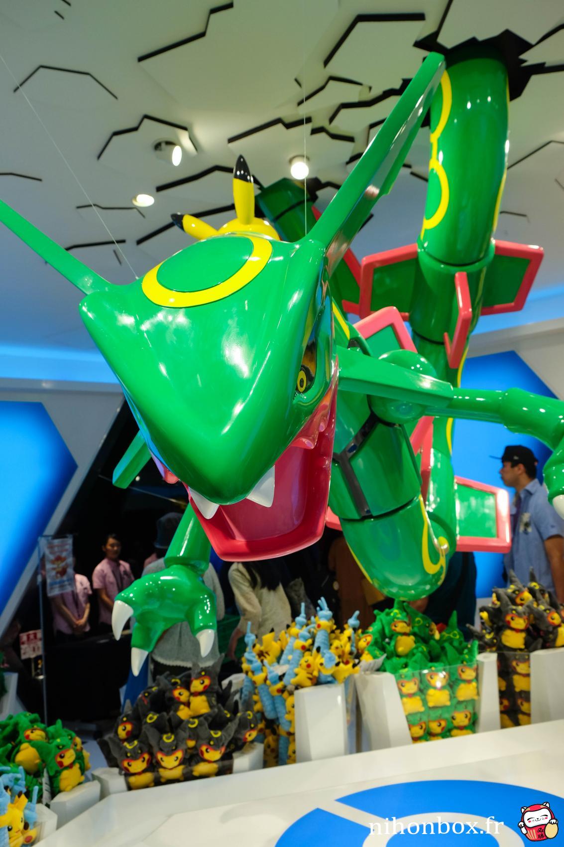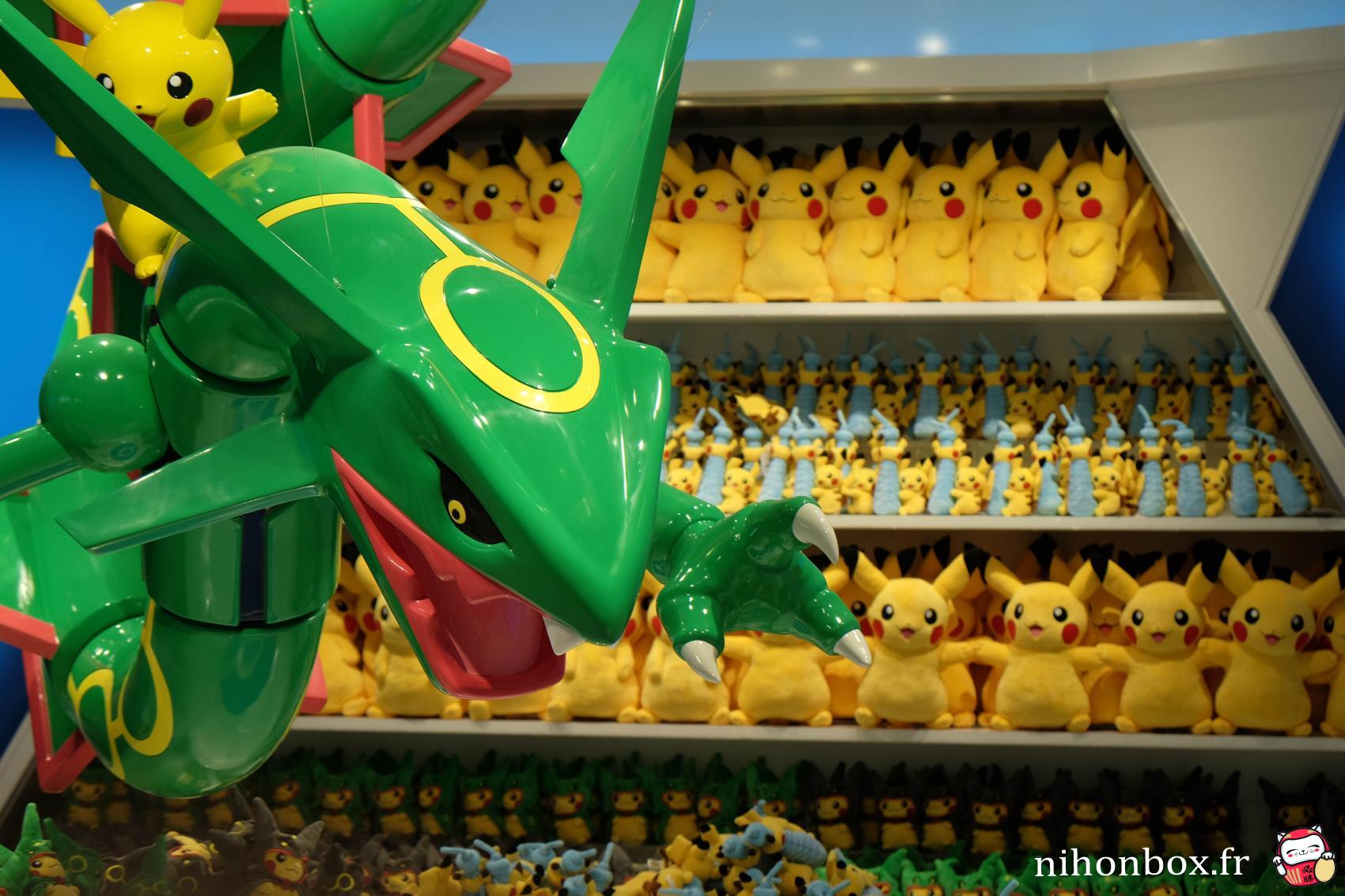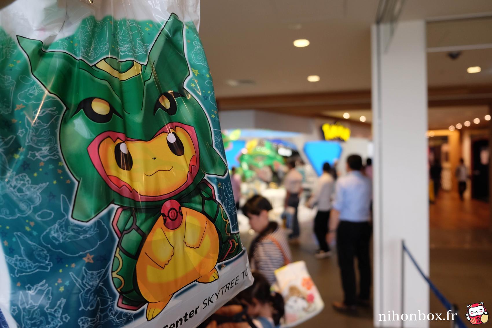 A l’intérieur de cette grande boutique, un monde fou, des paniers plein de goodies et une grande file d’attente pour arriver jusqu’à la caisse. La mascotte de ce Pokémon Center est le Pokémon Rayquaza, accompagné de Pikachu, il y avait donc pas mal de produits dérivés exclusifs à l’effigie de ces personnages. Pour pousser à l’achat des petits cadeaux étaient offerts, par exemple un porte-clés par tranche de 4000 yen d’achat. Pikachu était bien sûr présent en personne pour assurer le show auprès des fans, on peut dire qu’il a réussi sa mission.