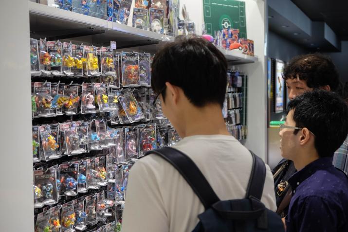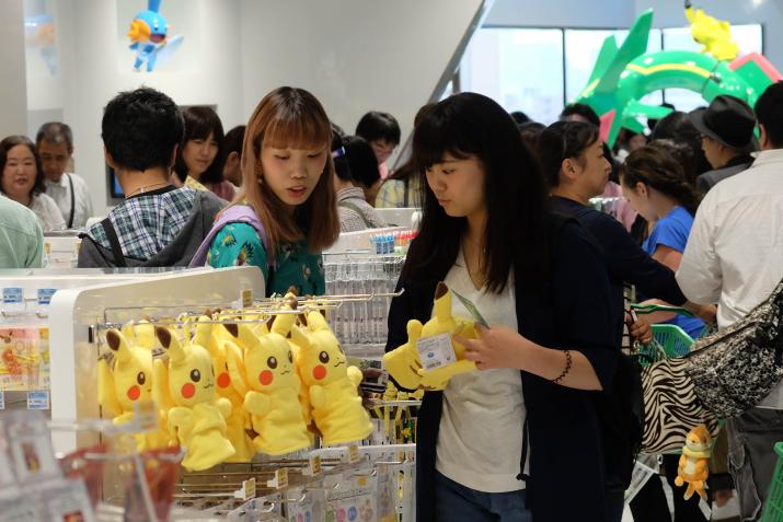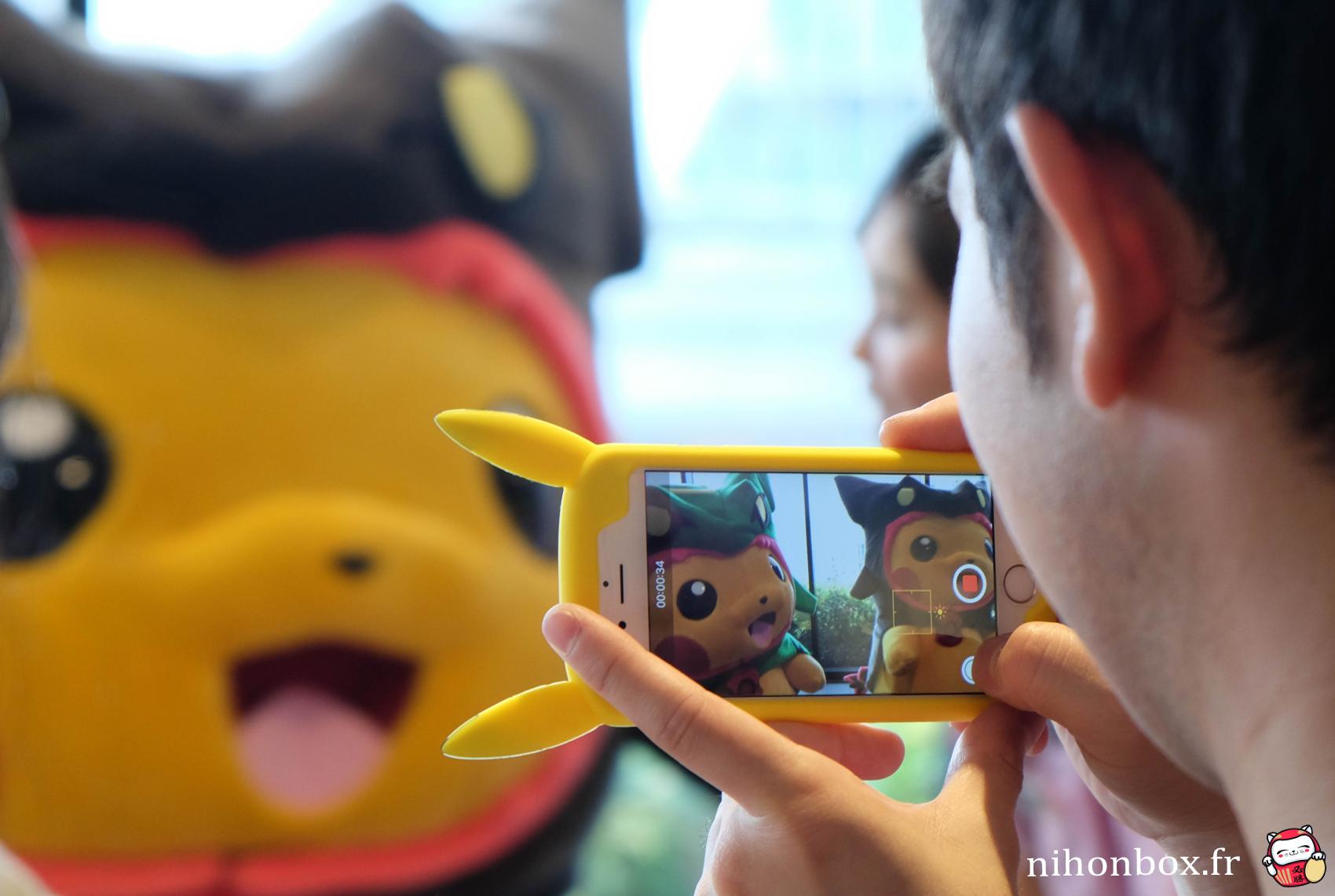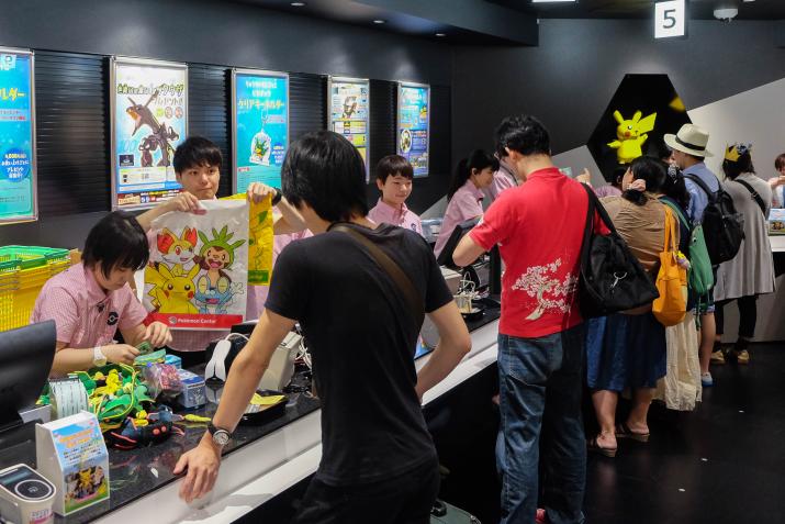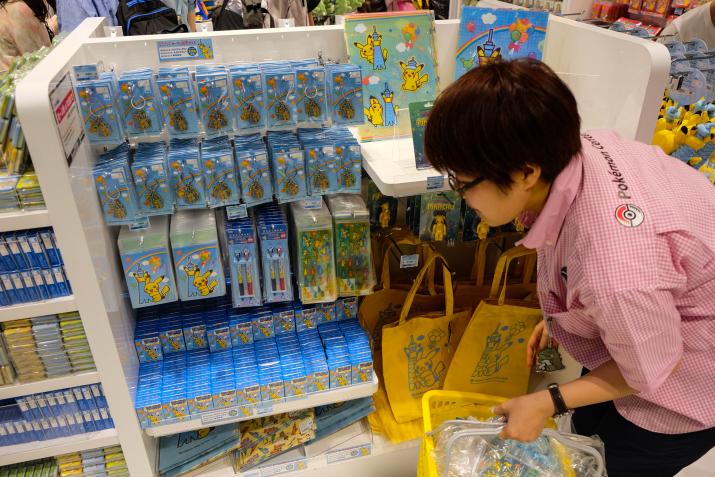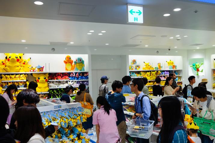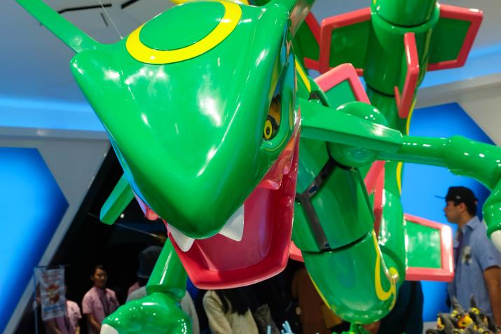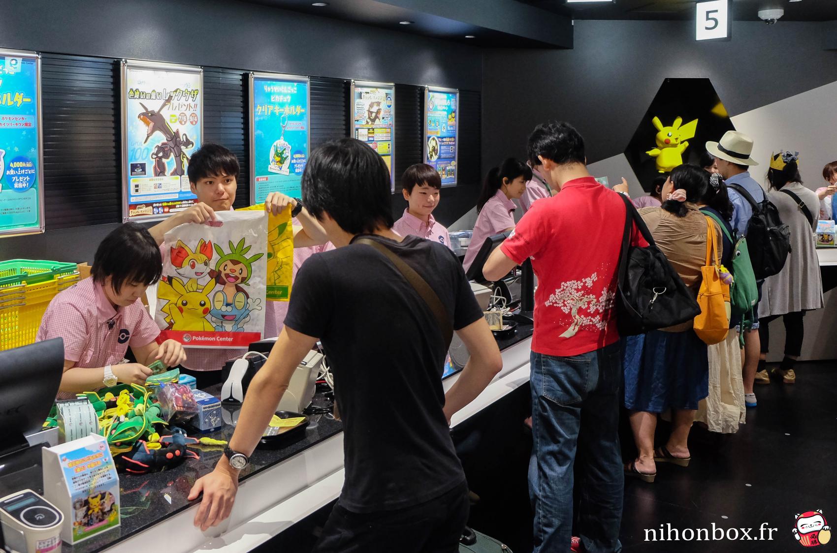 A l’intérieur de cette grande boutique, un monde fou, des paniers plein de goodies et une grande file d’attente pour arriver jusqu’à la caisse. La mascotte de ce Pokémon Center est le Pokémon Rayquaza, accompagné de Pikachu, il y avait donc pas mal de produits dérivés exclusifs à l’effigie de ces personnages. Pour pousser à l’achat des petits cadeaux étaient offerts, par exemple un porte-clés par tranche de 4000 yen d’achat. Pikachu était bien sûr présent en personne pour assurer le show auprès des fans, on peut dire qu’il a réussi sa mission.