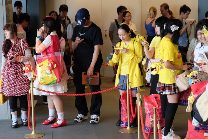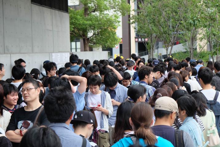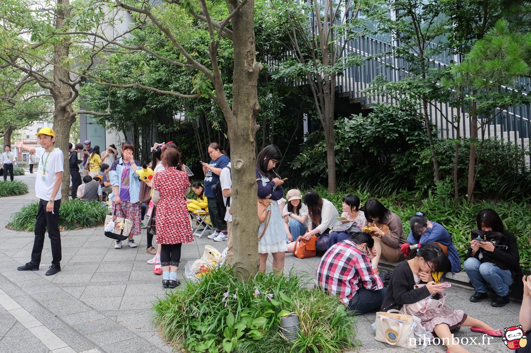 J’ai voulu aller voir de mes propres yeux à quoi ressemblait l’ouverture d’un Pokémon Center, j’ai donc décidé de m’y rentre avec un peu d’avance pour ne pas avoir de mauvaises surprises. Je suis donc arrivé à 9h30 en pensant être large, sauf qu’en arrivant sur place, je me suis tout de suite rappelé qu’on était au Japon et que les fans sont nombreux mais aussi fous furieux pour certains. Des centaines de personnes étaient déjà en train d’attendre à l’extérieur de la Sky Tree, certains étaient assis par terre sur des bâches (il était là depuis la veille ?), bref une folie. Toute la matiné (et sans doute toute la journée) la file d'attente a continué à grandir.
