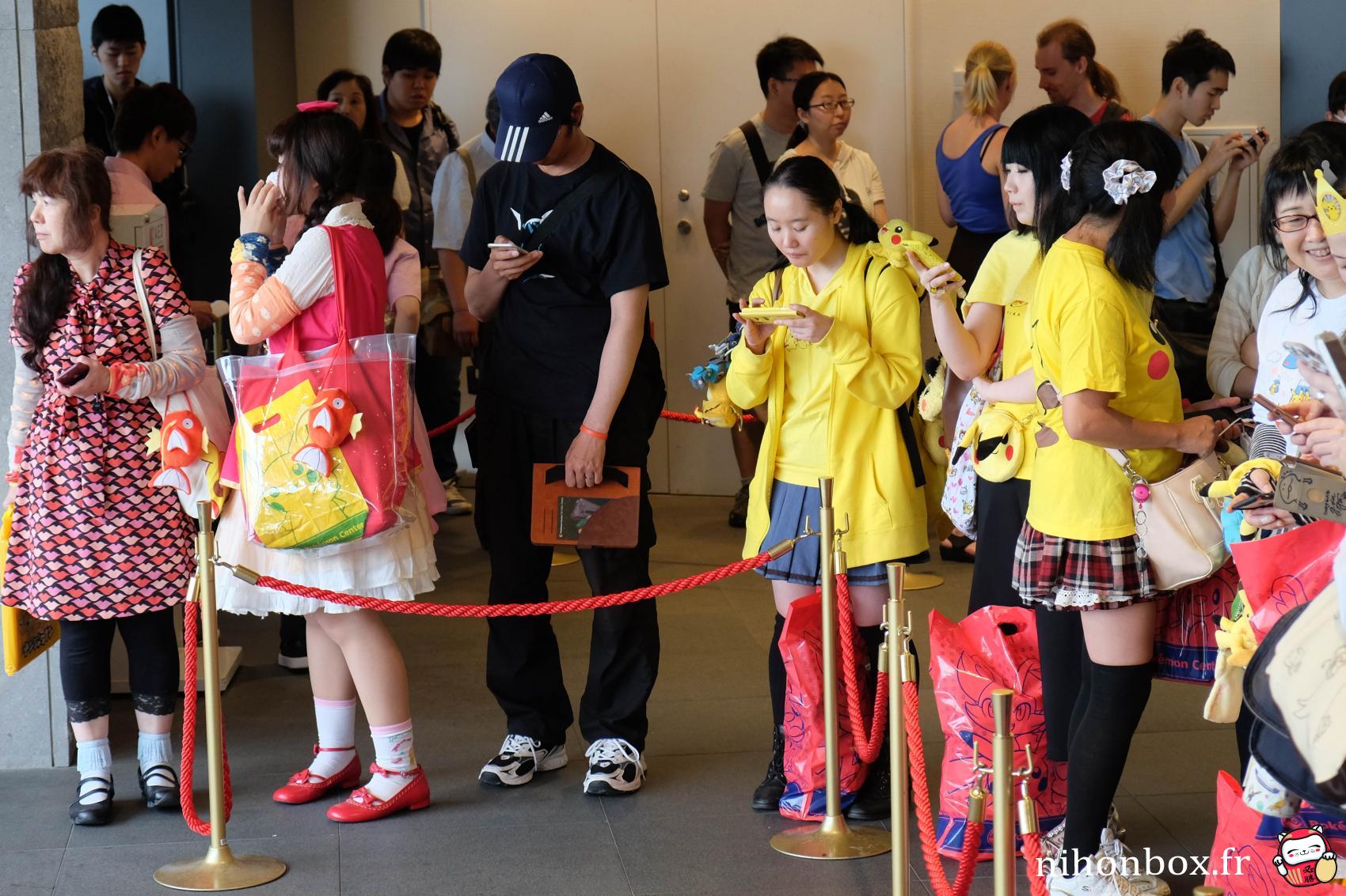 Malgré tout ce monde, l’organisation était très bien faite, comme souvent dans ce genre d’évènement au Japon, tout le monde était assez discipliné et les membres du staff très très nombreux. Il aura fallu environ 1h30 pour mettre les pieds dans ce tout nouveau Pokémon Center, après avoir attendu à plusieurs endroit et avancé petit à petit depuis l’extérieur de la Sky Tree jusqu’au 5eme étage du centre commercial (en prenant l’ascenseur, le tout encadré par le staff et avec un numéro en main pour ne pas se faire gruger sa place à la sortie).
