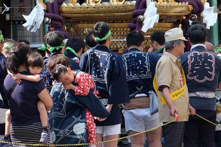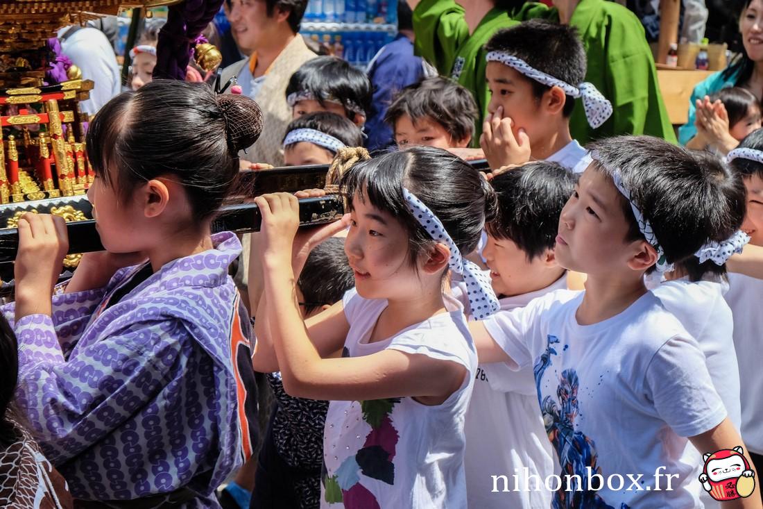 Les enfants aussi sont à l'honneur avec des petits Mikoshi adaptés. Beaucoup d'enfants portent des vêtements de matsuri pour l'occasion.
