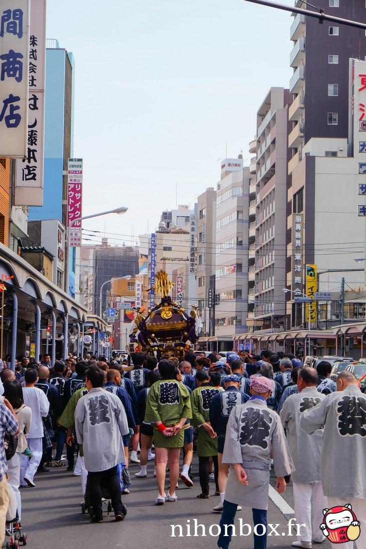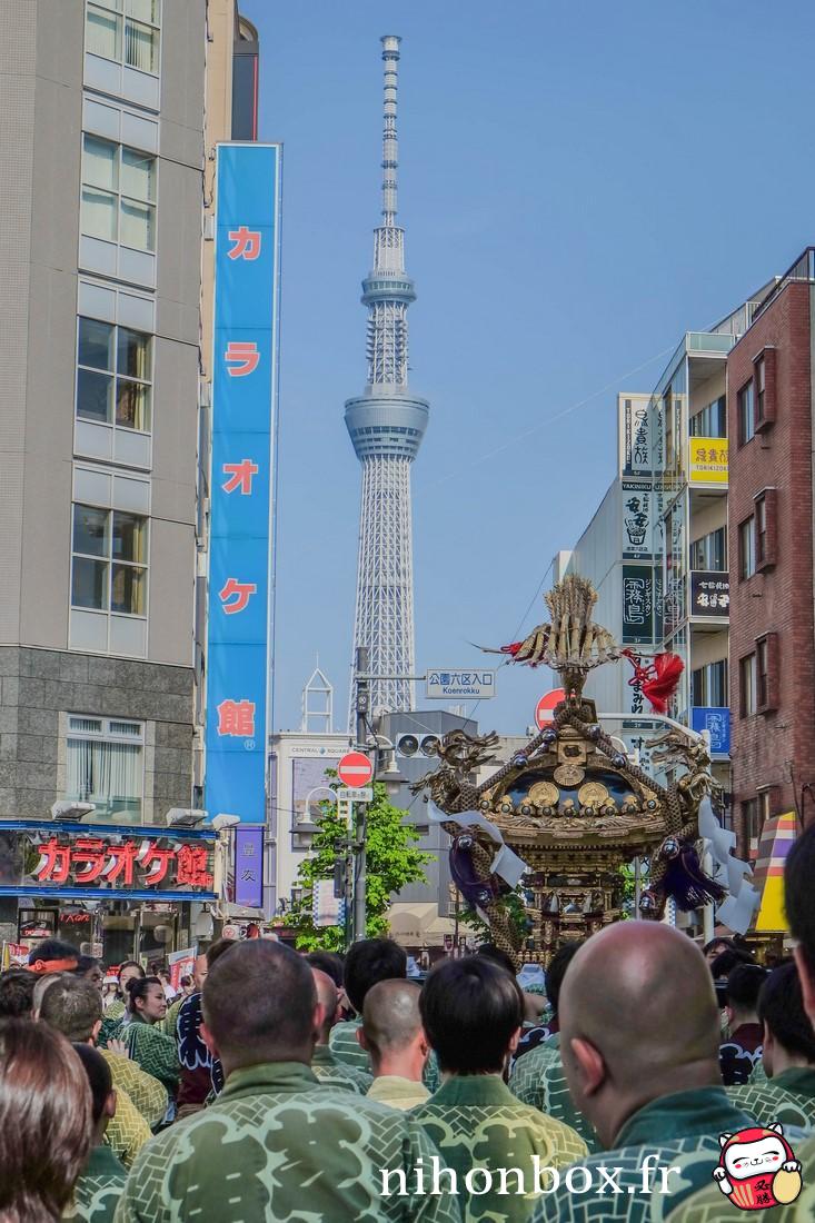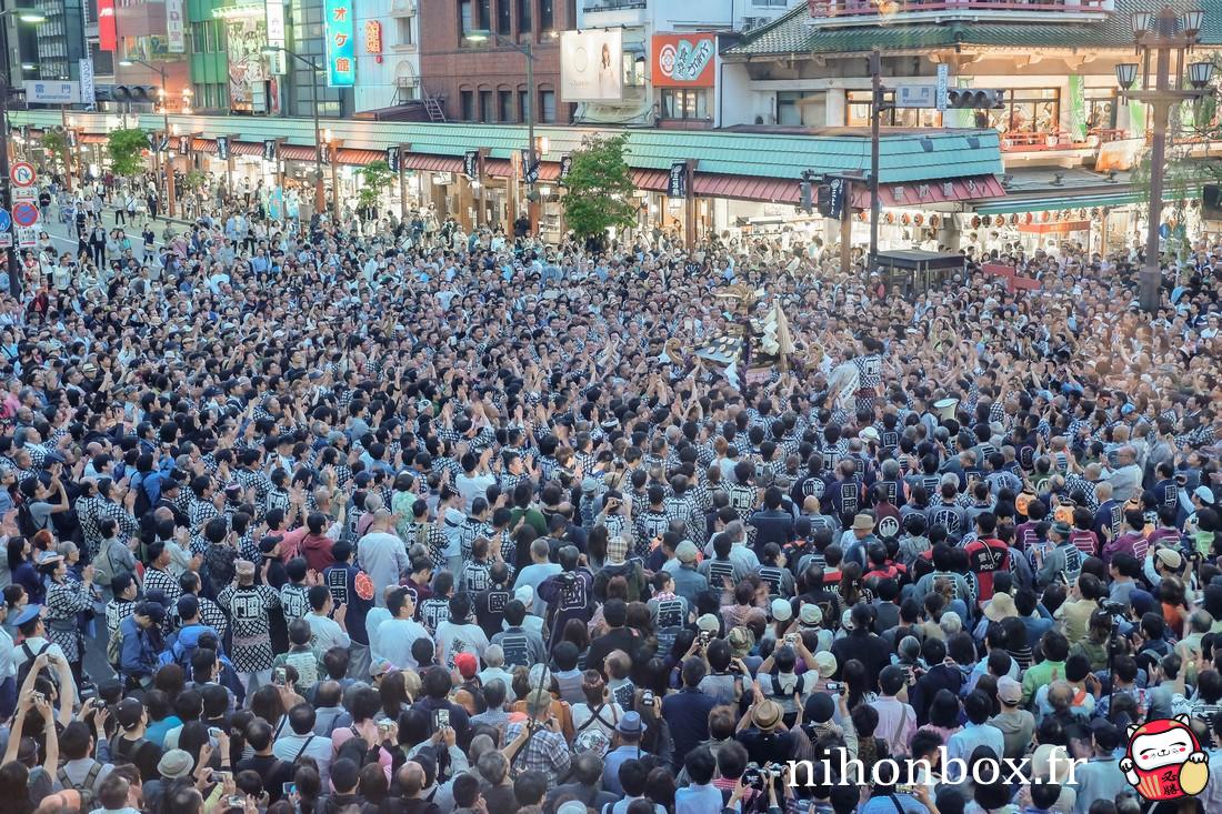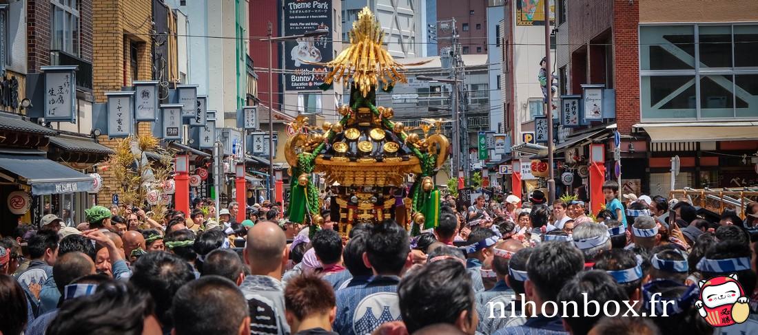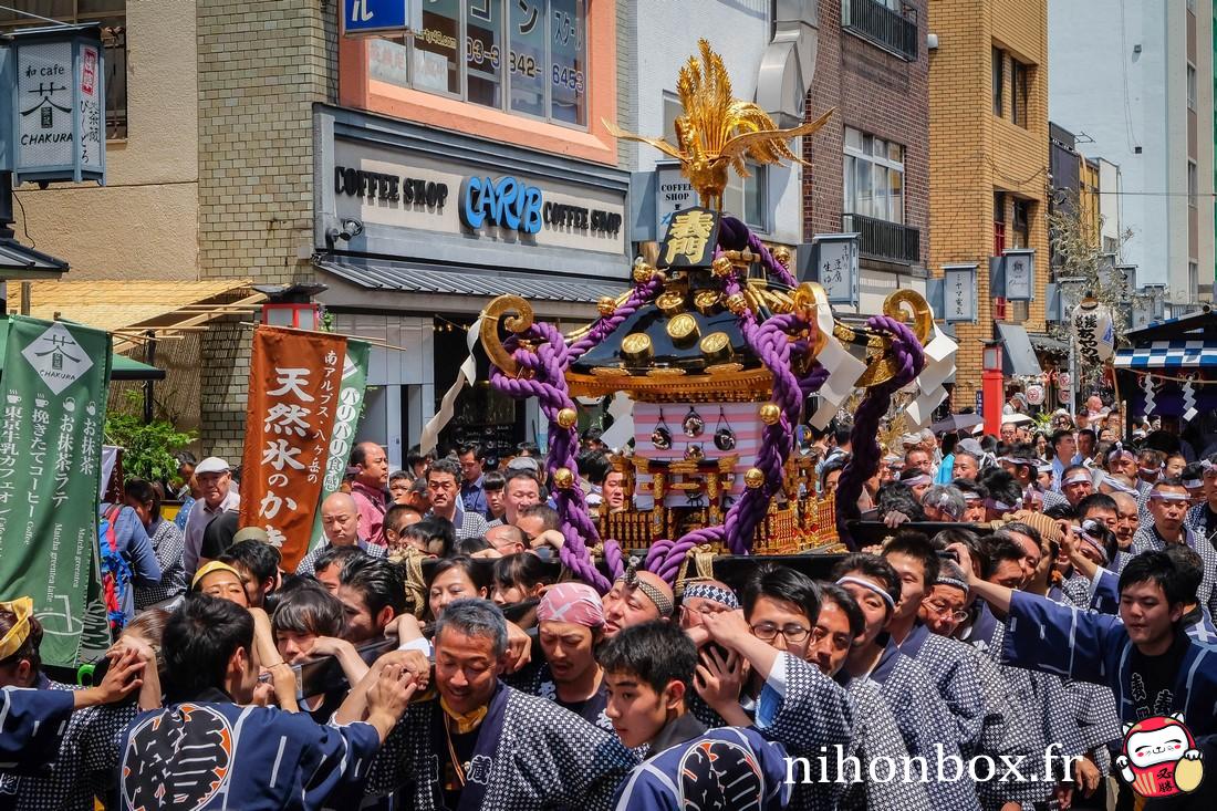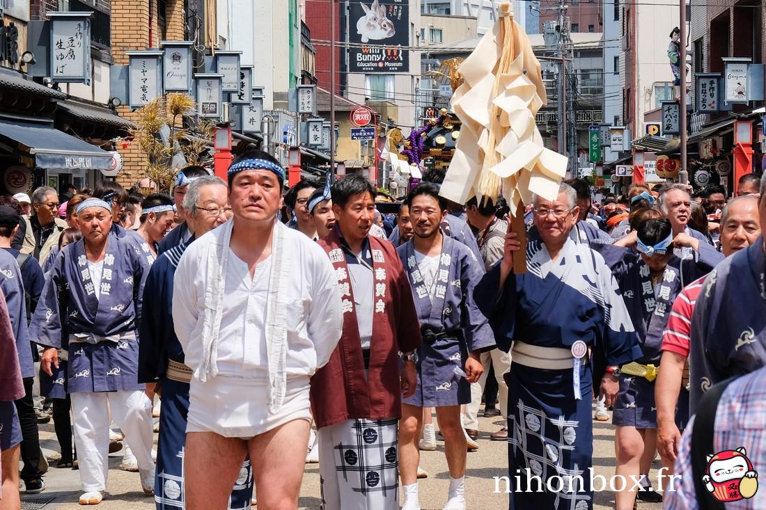 Pour la petite histoire, ce matsuri (festival) est tenu en l’honneur des 3 hommes qui ont fondé le Senso-ji, temple bouddhique d’Asakusa en 645 : Hinokuma Hamanari, Hinokuma Takenari et Hajino Nakatomo. Le Senso-ji est sans doute le temple le plus célèbre de Tokyo car souvent représenté sur les brochures touristiques, mais c’est aussi le plus vieux de Tokyo.