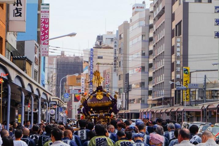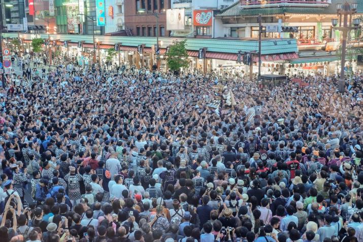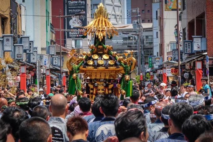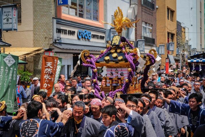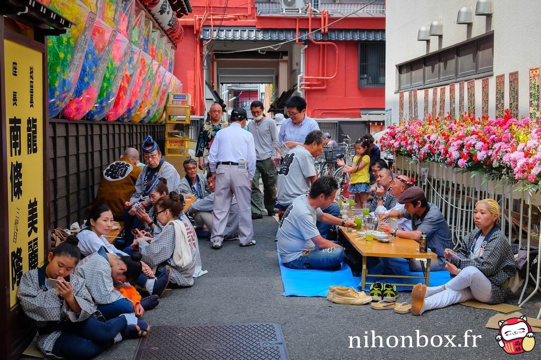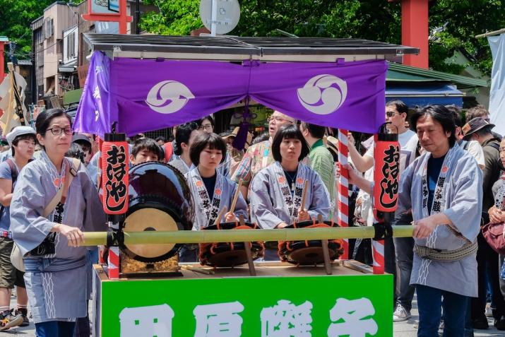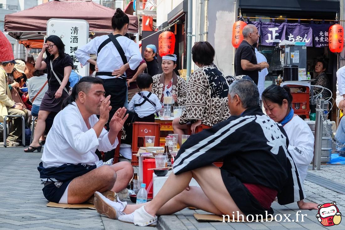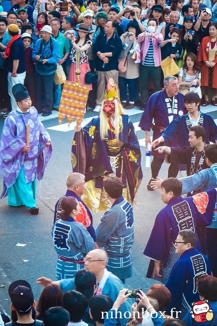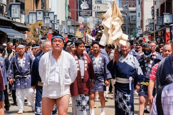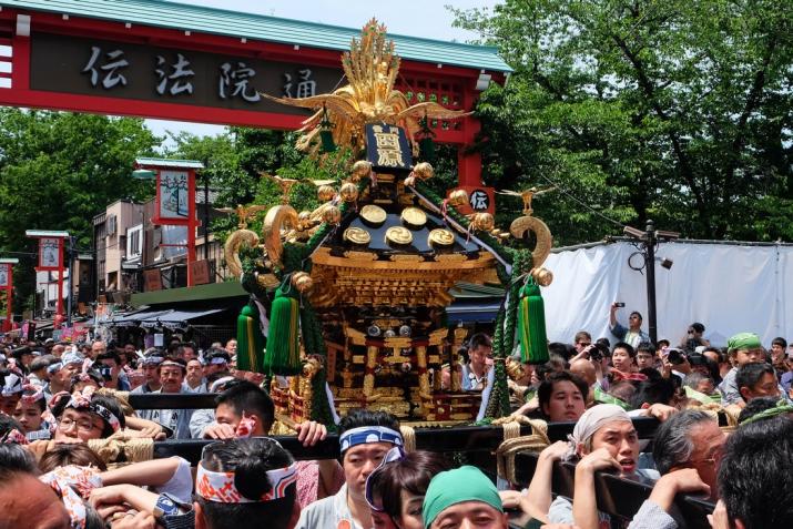 Pour la petite histoire, ce matsuri (festival) est tenu en l’honneur des 3 hommes qui ont fondé le Senso-ji, temple bouddhique d’Asakusa en 645 : Hinokuma Hamanari, Hinokuma Takenari et Hajino Nakatomo. Le Senso-ji est sans doute le temple le plus célèbre de Tokyo car souvent représenté sur les brochures touristiques, mais c’est aussi le plus vieux de Tokyo.