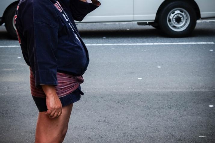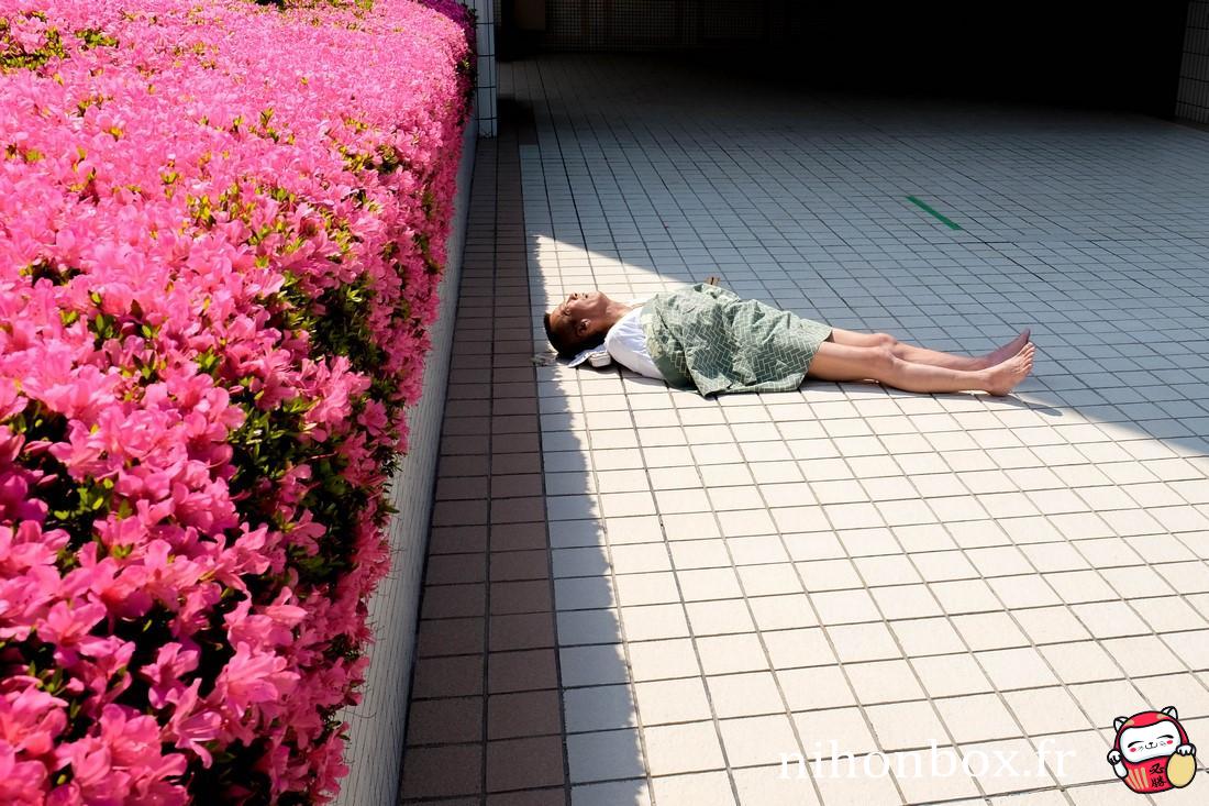 Porter un Mikoshi, c'est fatigant, alors certains profitent d'un petit temps mort pour faire une petite sieste au soleil.
