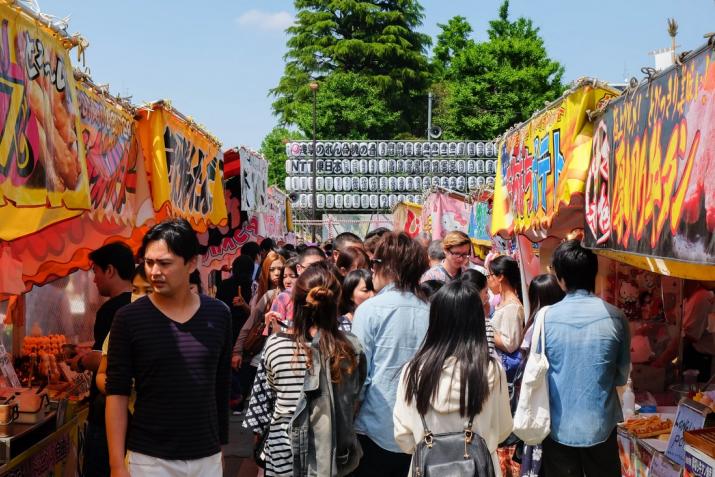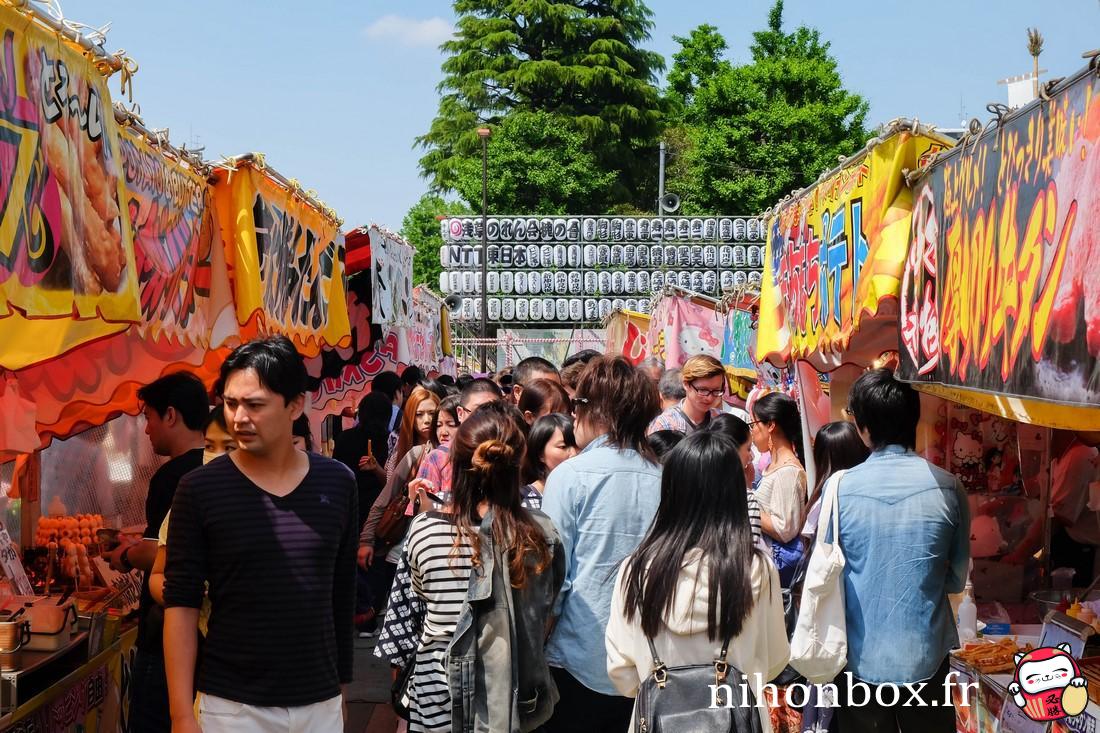 Près du temple Senso-ji, plein de petits stands de nourriture sont présents, comme dans beaucoup de festivals japonais.