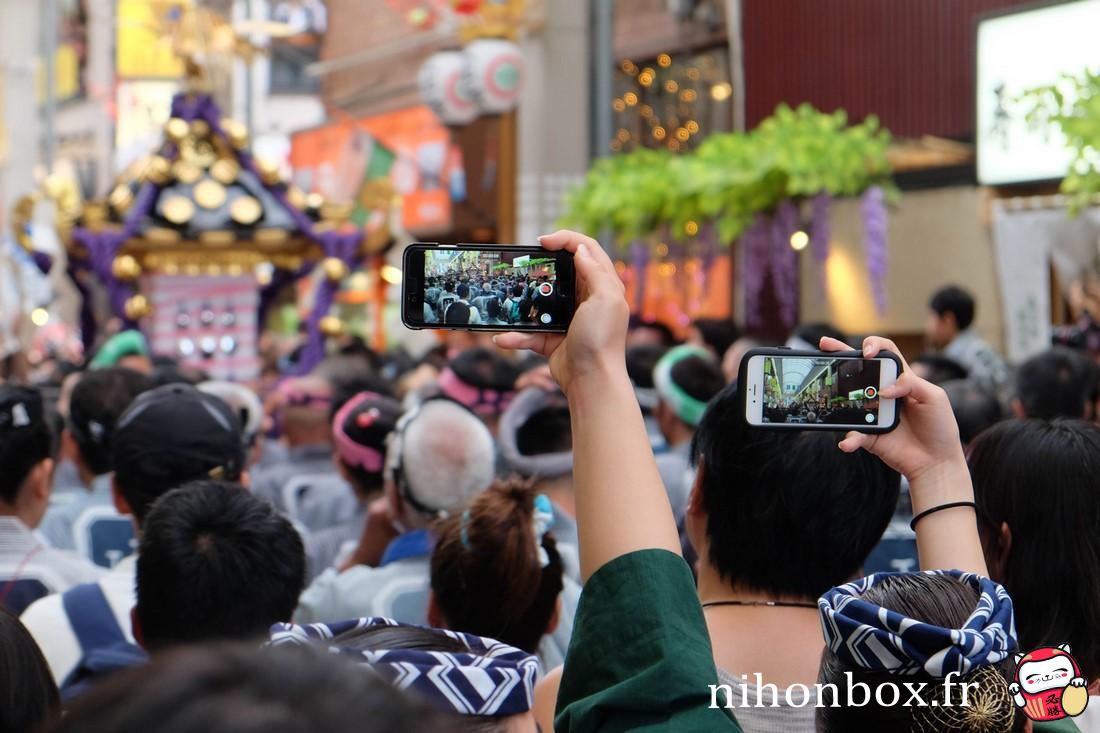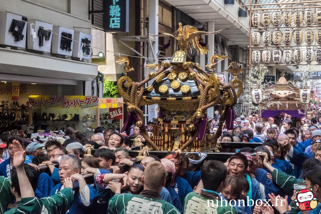 Malgré la forte affluence du festival, il est assez facile de s’approcher des Mikoshi pour ressentir l’ambiance de cette fête puisqu’il y en a vraiment beaucoup disséminés un peu partout. Dès qu’un Mikoshi s’éloigne, il suffit de tourner la tête pour en voir un autre un peu plus loin.